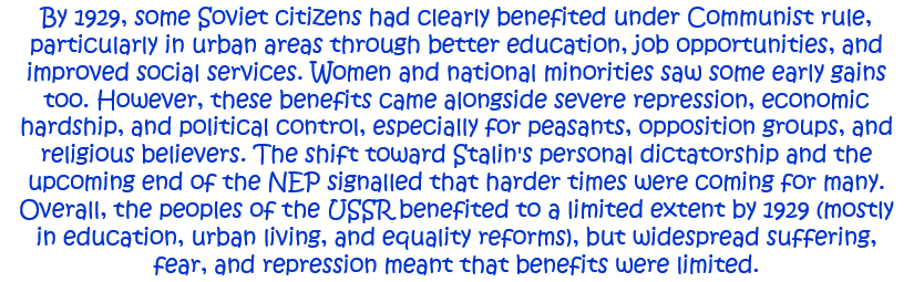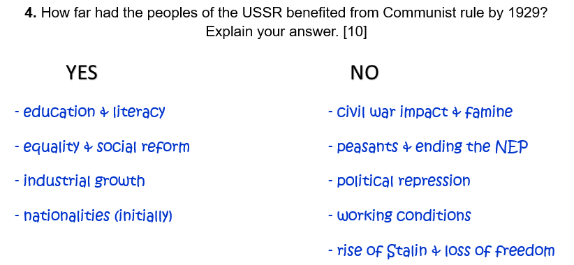 4. How far had the peoples of the USSR benefited from Communist rule by 1929? Explain your answer. [10]
