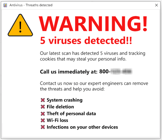 Some scare-war sites ask you to “contact a Helpline”. When you call the number, you would be asked to allow the technician to take remote control of your computer.