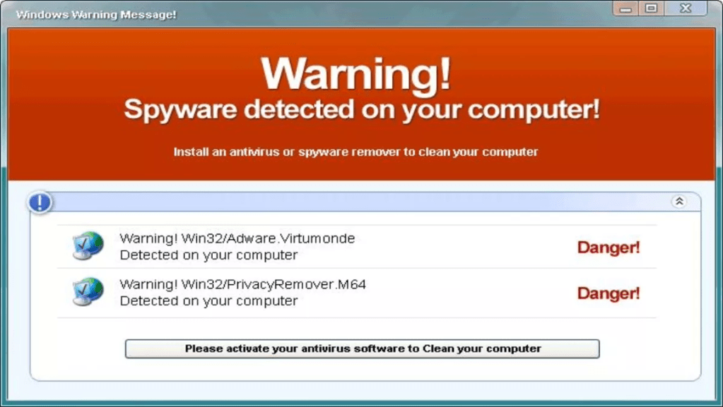 This is a flashing pop-up claiming “Your computer is infected! Click here to scan now!”