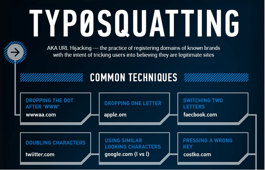Typo-squatting, is a form of URL hijacking, where criminals register domain names that are slightly misspelled versions of legitimate websites. They do this to trick users into thinking that they use the real website.