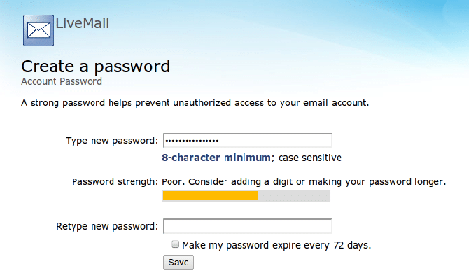 If you need to make an account, the website asks you to make a strong password with letters, numbers, and symbols to keep your account safe.