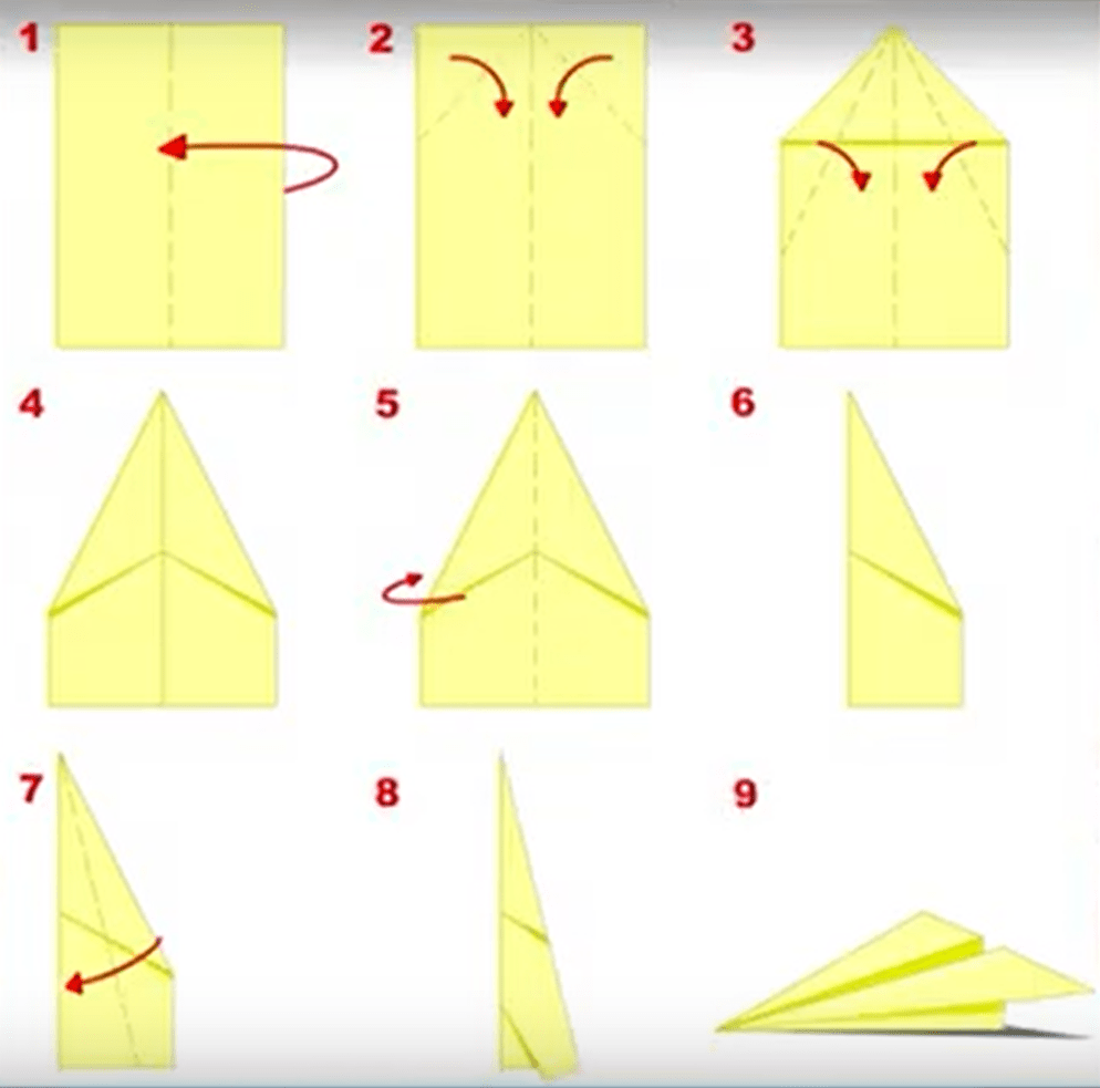 Use the algorithm (in the previous video, at 1:54 minutes)) for making a paper aeroplane!