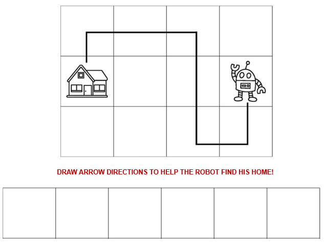 Let’s look at another type of algorithm. Can you write the arrow codes to help the Robot find his home…