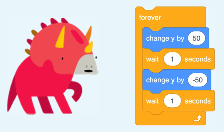 Have you noticed the repeat forever block inside the red dinosaur’s code?