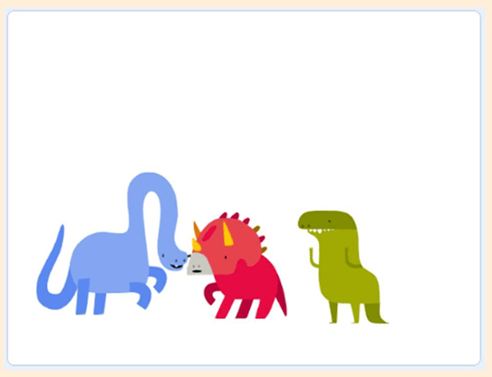 Look at the three dancing dinosaurs in this Scratch project.
