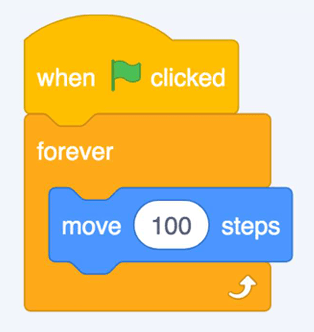 For example, in the code below, the sprite will keep changing to the next costume continually. This means it will keep changing the way it looks.