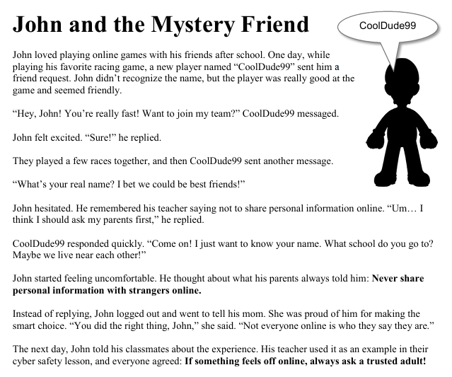 Let’s read a short story about a child who encounters a cyber safety issue: