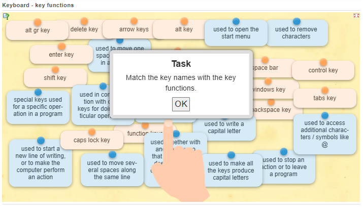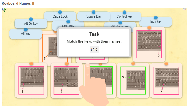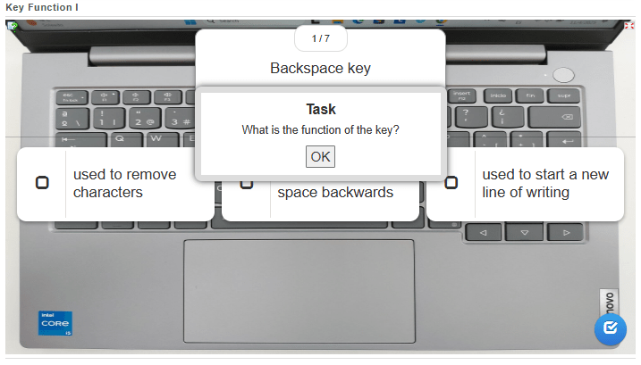 Complete the following tasks online to test your knowledge on what you have learnt so far about the keyboard of your laptop. (You have to click on “OK” to start.)
